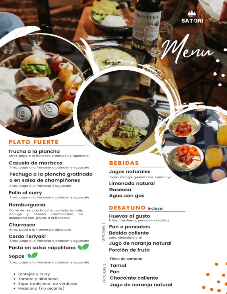 Este es el menú que manejamos en el lugar, cuando estes haciendo la reserva puedes elegir los platos de tu preferencia.